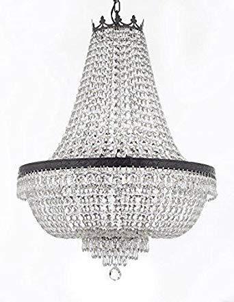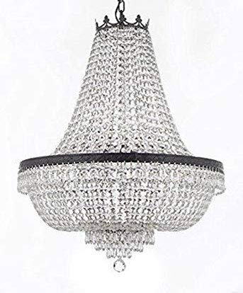 French Empire Crystal Chandelier Chandeliers Lighting H30" X W24" With Dark Antique Finish! Good for Dining Room, Foyer, Entryway, Family Room and More! This beautiful Chandelier is trimmed with Empress Crystal(TM) 100% CRYSTAL CHANDELIER, this chandelier is characteristic of the grand chandeliers which decorated the finest Chateaux and Palaces across Europe and reflects a time of class and elegance which is sure to lend a special atmosphere in every home. This item comes with 18 inches of chain. SIZE: W.24 X H.30" 9 LIGHTS. Assembly Required.