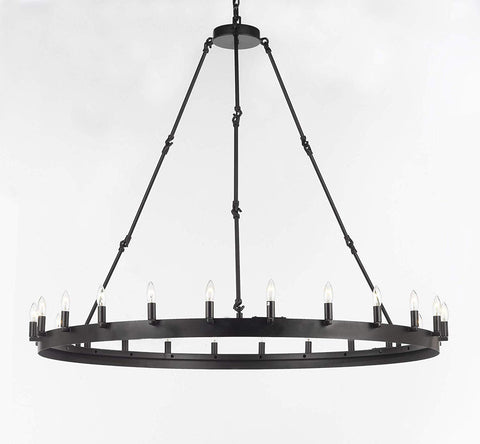 Wrought Iron Vintage Barn Metal Castile One Tier Chandelier Chandeliers Industrial Loft Rustic Lighting W 50" H 48" Size: W 50" H 48" 24 Lights
