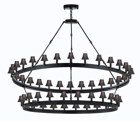 Set of 2 - Wrought Iron Vintage Barn Metal Castile Two Tier Chandelier Chandeliers Industrial Loft Rustic Lighting W 63" H 60" w/Black Shades